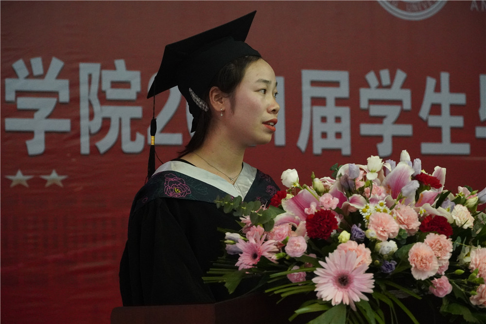 接着,师生代表发言。寇莹老师代表全体教师发言,在讲话中寇老师表达了对毕业生们的衷心祝福和不舍之情,同时也对他们充满了殷切希望:希望同学们为学要持之以恒,毕业离校,不是学习的结束,而是在更高起点上的开始。黄星星同学代表全体毕业生发言,黄星星同学回顾了大学四年的生活点滴,感恩公司和公司给予的关怀帮助,感谢老师们的谆谆教诲,感怀大学岁月和同窗之情。最后,她代表毕业生们表达了对公司、公司、老师、同学们的依依不舍之情,并向公司及师生们献上了真诚的祝福。