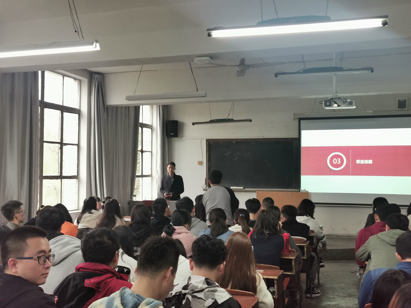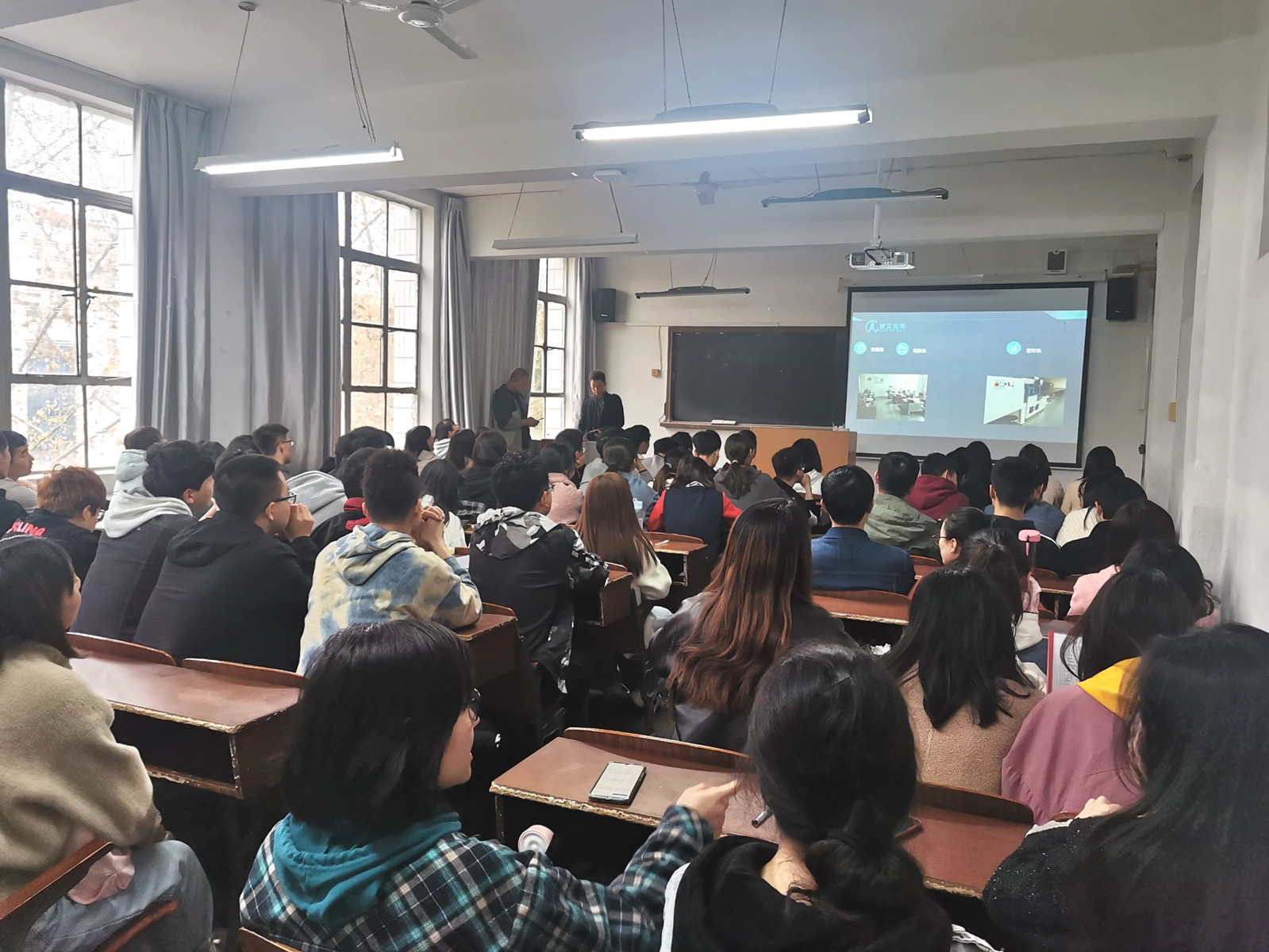 陕西崇文生物科技有限公司负责人通过播放企业宣传片向同学们展示了公司的基本情况,通过PPT展示等方式向参会同学介绍了公司的企业文化、发展现状、员工培训体系、薪酬福利政策,并详细讲解校招的招聘需求、招聘流程、简历投递等事项,让同学们对崇文生物科技有限公司有了进一步的了解。