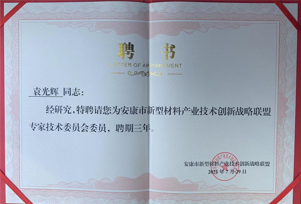 7月29日,秦创原·安康市新型材料产业技术创新战略联盟成立大会暨新材料产业高质量发展研讨会在安康国际会议中心举行。省科技厅二级巡视员樊瑛华出席并讲话,市政协副主席孟平致辞,市科技局局长张志群主持。会议期间,西北工业大学教授黄英和天津大学江文革教授分别作了新型柔性材料的发展与创新和磷酸铁锂(LiFePO4)的前世、今生和未来的报告。公司袁光辉副经理、曹国标、张继东博士参加了会议。会上,公司被聘为常务理事单位。袁光辉、张继东被聘为安康市新型材料产业技术创新战略联盟专家技术委员会委员。