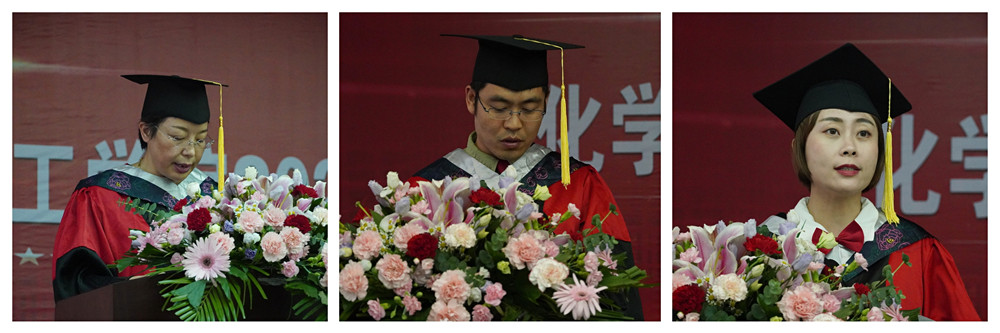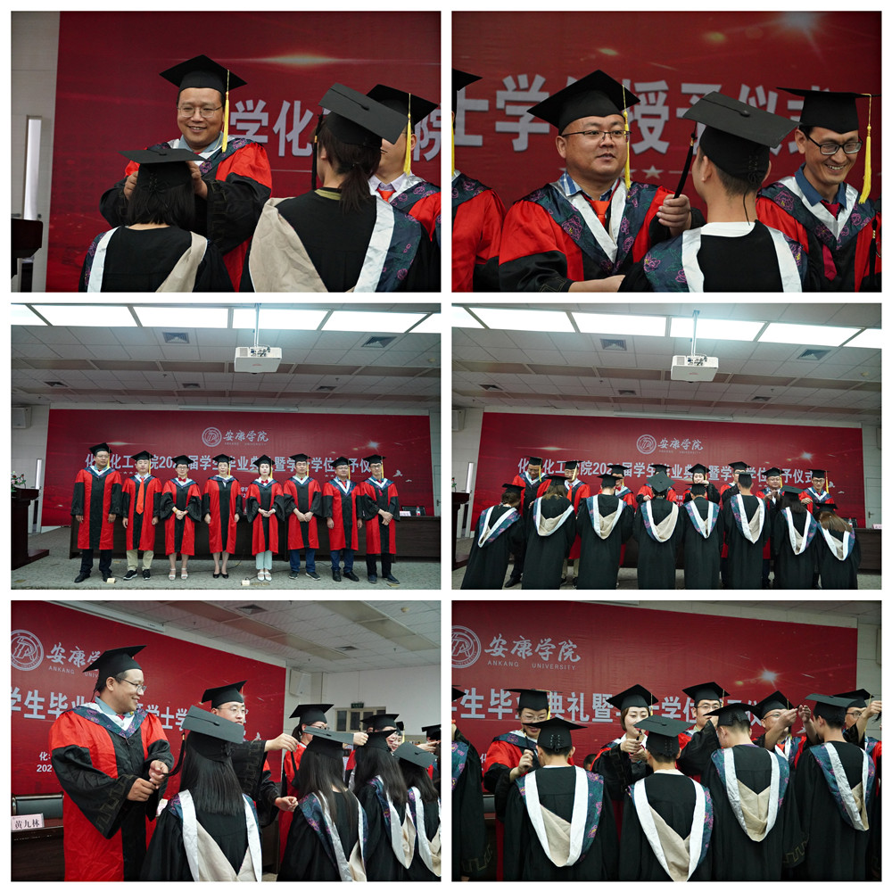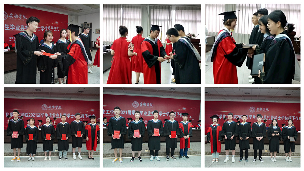 在全场热烈的掌声和欢快的音乐声中,化工公司对校级优秀毕业生和考研员工进行了表彰,并向2021届员工联络员颁发了聘书。柳林、袁光辉、黄婷等8位老师为获得学士学位的毕业生逐一拨穗,颁发学士学位证书,并合影留念。