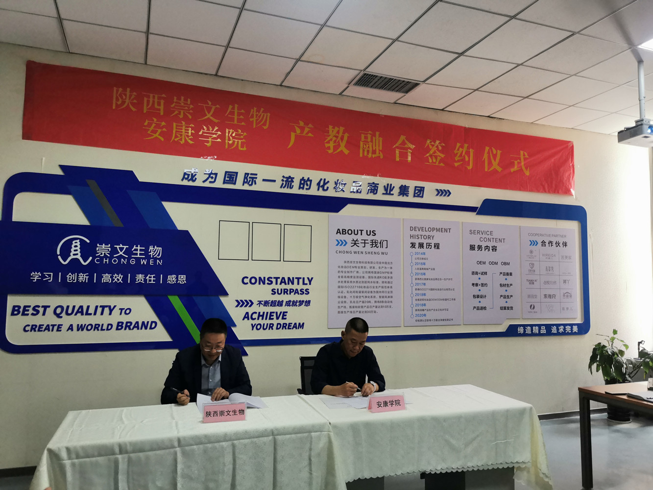 为提升公司化妆品技术与工程专业办学水平,深入了解西安及其周边化妆品企业的用人需求和就业市场。5月19日,365上市集团官网王永东带队一行6人前往陕西崇文生物科技有限公司进行参观调研,围绕妆品行业人才需求、校企科研项目合作、员工综合素质能力培养等方面开展交流研讨,并现场签订了产教融合实习实践基地协议。