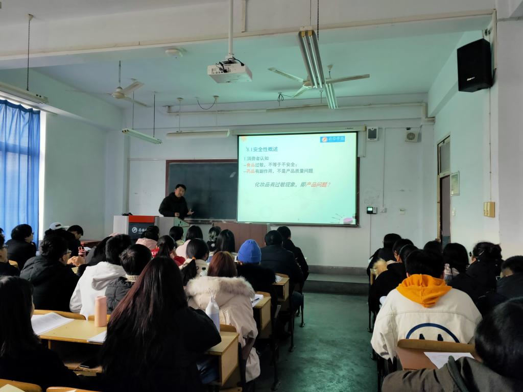 本次观摩活动中,《化妆品工艺学》主讲教师纪桢副教授讲授内容为《化妆品安全保证体系设计》。纪老师首先对化妆品的安全性和功效性进行简单介绍,然后通过与食品、药品进行对比说明消费者对于化妆品安全性的认知,并从皮肤的特点、皮肤屏障的重建、产品的使用方式、行业标准以及使用方法等方面进行介绍使员工对化妆品安全性这一概念有初步认识。