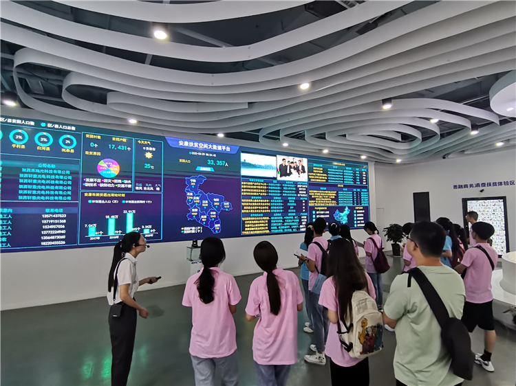 早上9:00,团队来到了安康扶贫空间的展馆,在工作人员的陪同下,重温了习近平总书记来陕视察的重要讲话精神,了解了安康脱贫工作的进展与现状,认识到安康各县区的特色扶贫产品与网络热销农特产品。团队通过参观学习,了解到最安康扶贫网络销售平台、扶贫832网络销售平台、京东扶贫馆、“最安康”品牌扶贫等在线销售平台对农户的帮助,也意识到新的时代背景下,网络销售扶贫是脱贫攻坚工作中十分重要的一部分。整个参观过程中大家积极记录,收获满满。