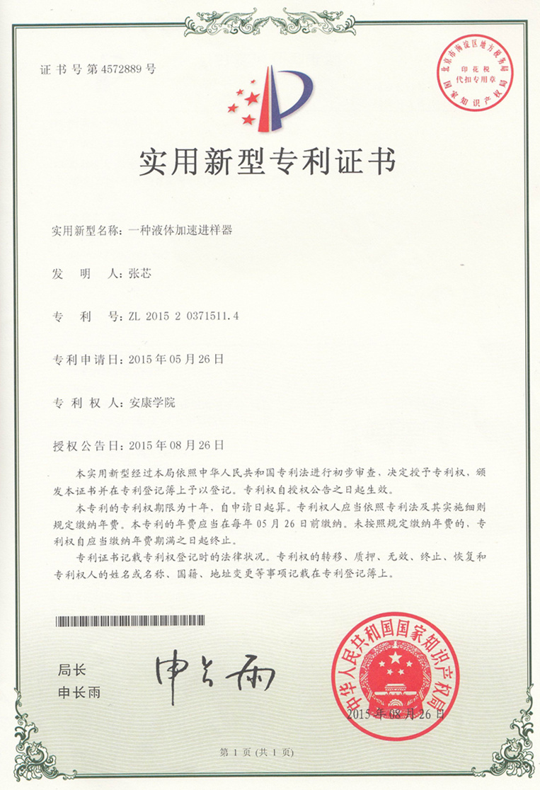 日前,以365英国上市公司官网作为专利权人,化学化工系教师张芯作为第一发明人申请的实用新型专利“一种微型全自动中空纤维膜测试平台”、“一种液体加速进样器”,相继获得国家知识产权局授权,并获得专利证书,专利号分别为ZL 2014 2 0865489.4和ZL 2015 2 0371511.4。