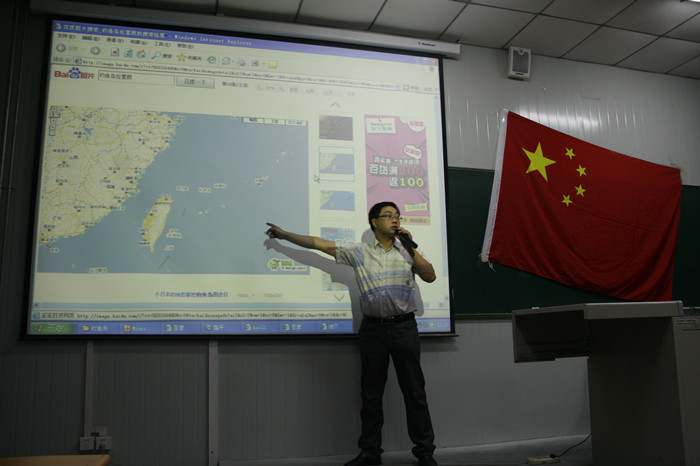 在史料展播环节中,同学们准备了详实的资料,介绍了“9.18”事变的过程、背景,以及在中国共产党领导下的全国抗战;通过钓鱼岛事件资料,介绍了中日关系的历史演变,证明了钓鱼岛及其附属岛屿自古以来就是中国的固有领土,揭露了日本政府及其右翼分子图谋钓鱼岛“国有化”的险恶用心及其极端错误。李新安部长现场进一步讲解了钓鱼岛岛屿构成、属于中国固有领土的历史事实、美日在我国钓鱼岛归属问题上历史上卑劣的所作所为。