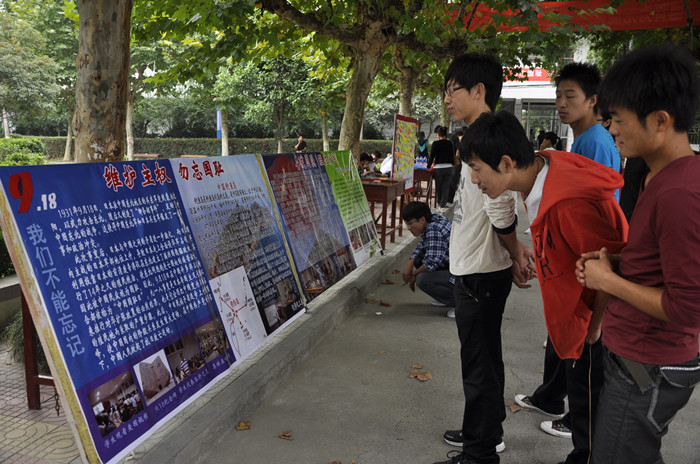9月18日,化学化工系团总支、系分会还在校园内进行了“维护主权,勿忘国耻,奋发图强,理性爱国”宣传和签名活动,并制作了内容丰富、版面精美的宣传展板。