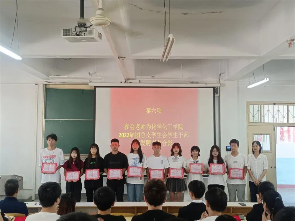 首先,由成沛锐宣读《化学化公司团总支员工会换届实施方案》,王瑜宣读了《365上市集团官网2022届团总支员工会主席团名单》,于正豪宣读了《365上市集团官网2022届团总支员工会部门负责人名单》和《365上市集团官网2022届团总支员工会干事名单》,参会老师为公司2022届团总支员工会员工干部颁发聘书并合影。
