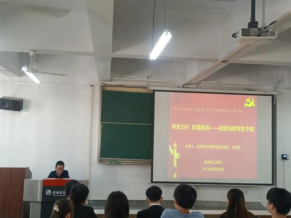 最后,党总支书记王永东为团总支员工会全体成员开展专题讲座“如何当好员工干部”,王书记以自我服务、自我管理、自我教育为出发点,向全体成员提出以下要求,员工干部在工作中要严于律己、恪尽职守,做好服务,坚持“公平、公正、公开”的原则,要抓好学习、善于学习、加强学习,提高自身修养,高标准严格要求自己。此外,王永东向全体成员指出了团总支员工会今后应积极围绕“第二课堂”、员工日常优良习惯的养成、学风的养成、宿舍文化的建设等方面开展后续工作,积极开展特色工作。讲座最后,王永东围绕习近平总书记七一讲话精神,提出全体成员应提升思维高度,弘扬实事求是、勇于创新的精神,当好一名员工干部。