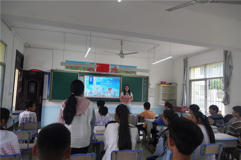 本次汉滨区县河镇财梁九年制公司的科普活动,覆盖了小学及初中部的员工。力图寓教于乐,将在课堂中所学的知识融入教学内容之中,课堂上,老师和科普团成员们共同带领同学们体验了“无中生有”、“魔法药水”、“牛奶可乐”等多个趣味化学实验,同学们的目光都被神奇的实验所吸引,在欢声笑语中向同学们展示了化学之美。科普团成员在展示实验现象的同时,也不忘深入浅出地为同学们讲解其中的化学原理。在掌握了化学基本原理后,老师和科普团成员对同学们动手实践进行了指导,他们用童真的双眼和稚嫩的手完成了一次次实验,在实验过程中,很多员工第一次触碰烧杯、试剂,即使其中遇到了不少小问题,在科普团成员的帮助之下也都迎刃而解,完成了自己的小实验。