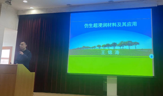 3月24日下午,公司王锦涛博士做了题为《仿生超浸润材料及其应用》的学术讲座。化工公司部分师生参加了此次讲座,讲座在江南校区1号教学楼六楼报告厅举行。