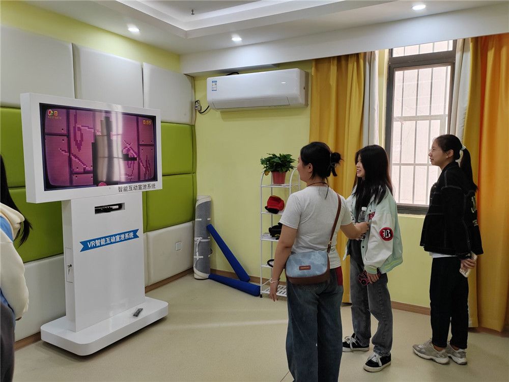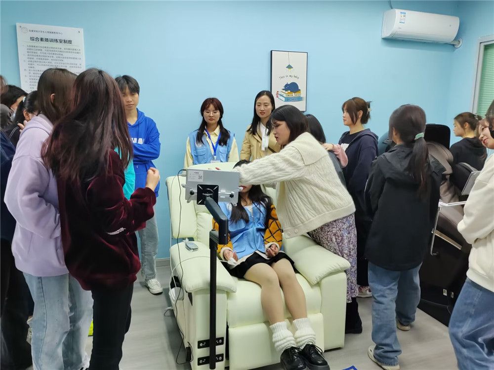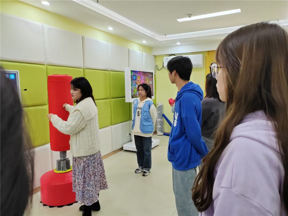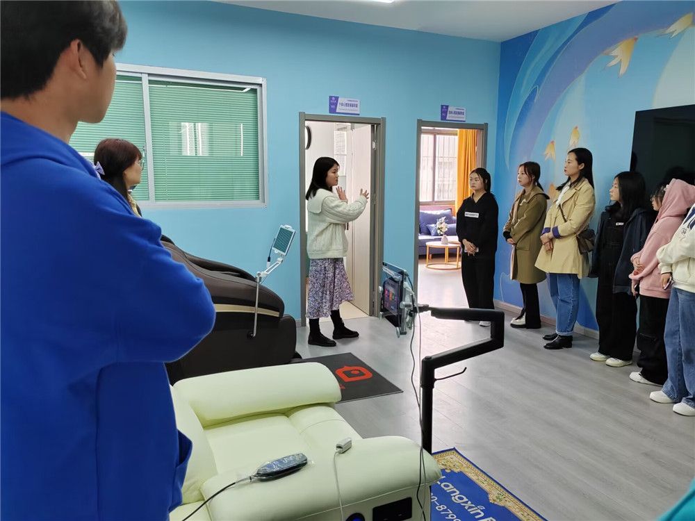 公司心理健康教育中心主任柯小敏老师向同学们介绍了老员工心理健康教育中心的职能、专兼职心理咨询师、基本建设等情况,带领同学们依次参观了来访接待室、朋辈心理工作站、情绪宣泄室、综合素质训练室、积极心理学体验中心,详细讲解了各功能室的主要用途及使用方法。同学们尝试了击打情绪宣泄装置,躺在沙发上听音乐放松身心,真正体会到了调节情绪、释放压力的效果,对心理健康中心的工作有了更直观、更深入的认识。