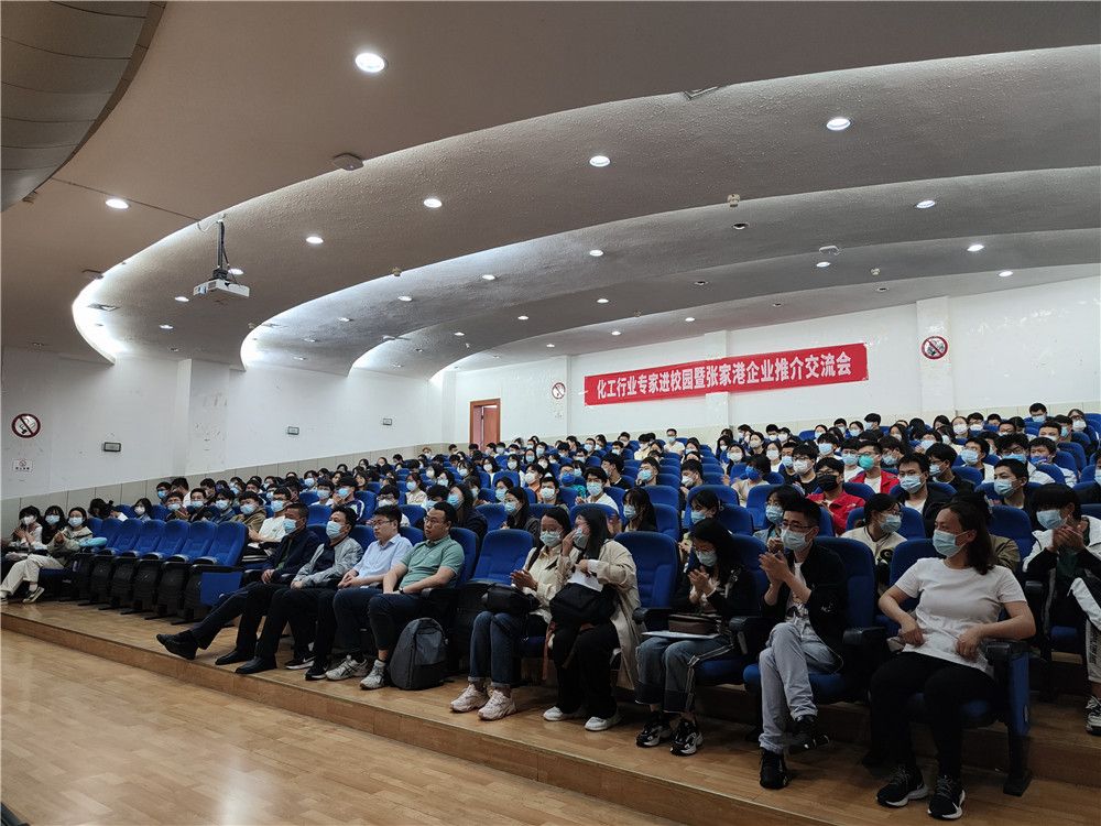 为更好的拓宽公司员工就业渠道,推进2024届毕业生更高质量就业,帮助同学们加强对化工行业现状的了解。2023年5月26日下午,365上市集团官网邀请江苏恒盛药业有限公司、苏州丰倍生物科技股份有限公司、长华化学科技股份有限公司、江苏七洲绿色化工股份有限公司、天齐锂业(江苏)有限公司5家化工企业走进校园,开展化工行业专家进校园暨张家港企业推介交流会。会议在1号楼六楼报告厅举行,5家化工企业的人事负责人、公司党支部书记王永东、辅导员于正豪、许珂瑶以及2024届毕业生到场参加。