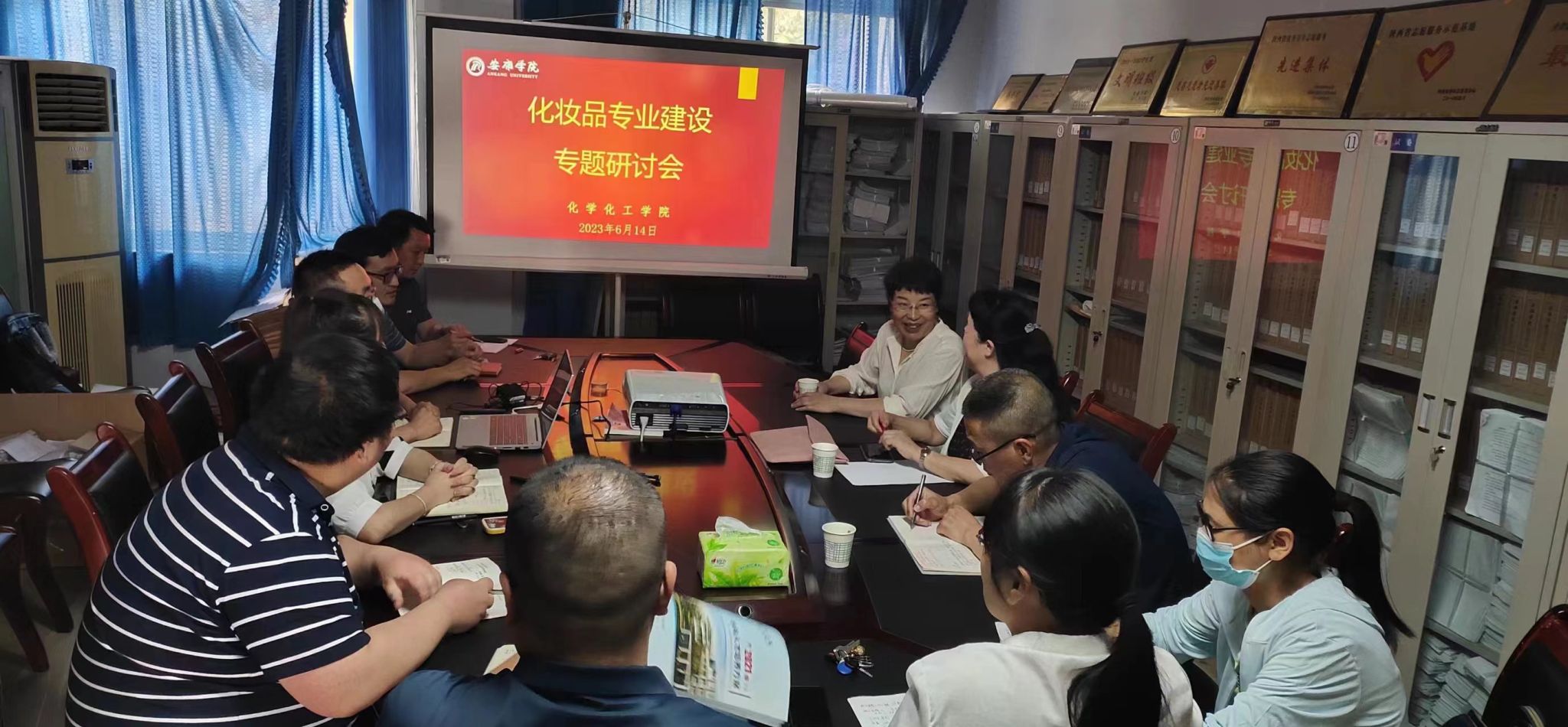 孟现星首先对化妆品技术与工程专业的发展历程、人才培养目标、课程体系、实验室建设方面进行汇报。与会化妆品技术与工程专业教师就授课中的一些问题与张教授进行讨论。张教授表示,化妆品技术与工程专业人才培养方案应更加突出化妆品相关课程,适当缩减化学基础类课程学时。在实验室建设方面,扩大化妆品专业实验室面积,为后续更加完善的人才培养体系预留足够空间。同时张教授建议课程体系要紧紧围绕化妆品“技术链”进行设置,结合区域位置和办学定位,突出天然化妆品原料研发的人才培养特点。