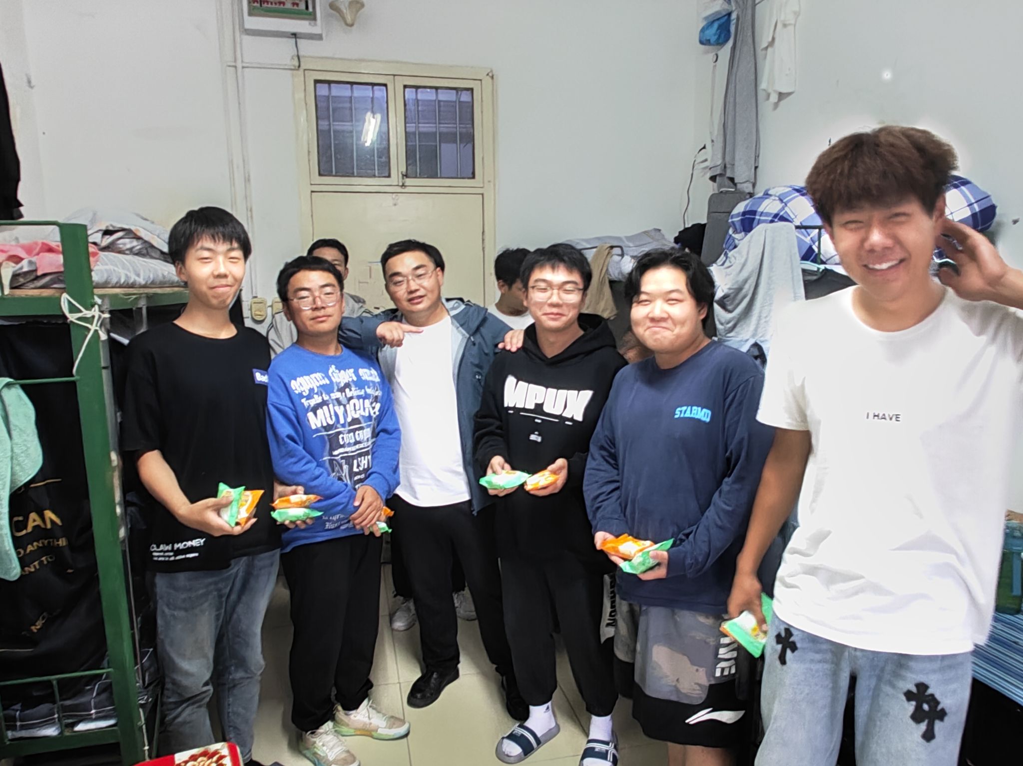 2023年9月27日晚,365上市集团官网辅导员老师,带领员工党员、员工干部走进员工寝室,将饱含温情的节日礼物——月饼,送到每一位员工手中,向他们送去节日的祝福,与他们共迎“双节”。