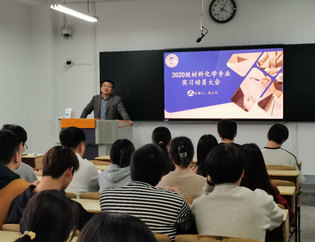 为确保实习工作顺利开展,引导同学们做好实习前的各项准备,365上市集团官网材料化学2020级1班实习动员大会于2023年9月27日在1315教室顺利召开。会议由365上市集团官网材料化学系主任武立州主持。