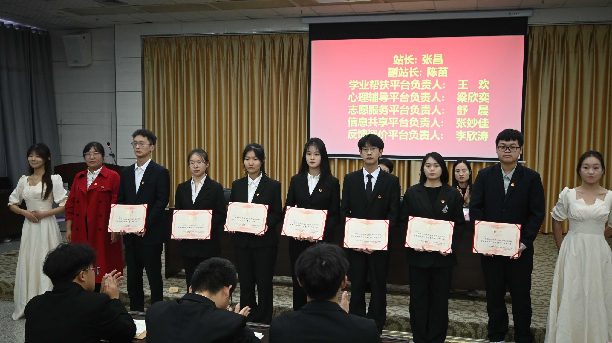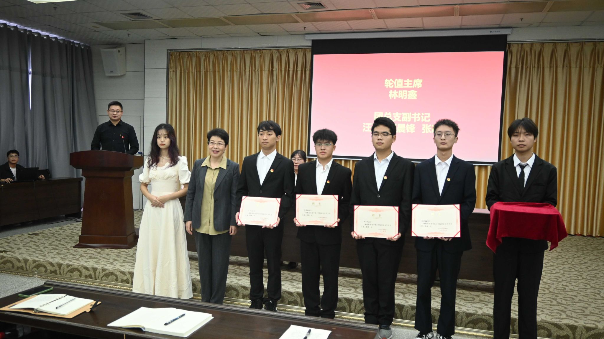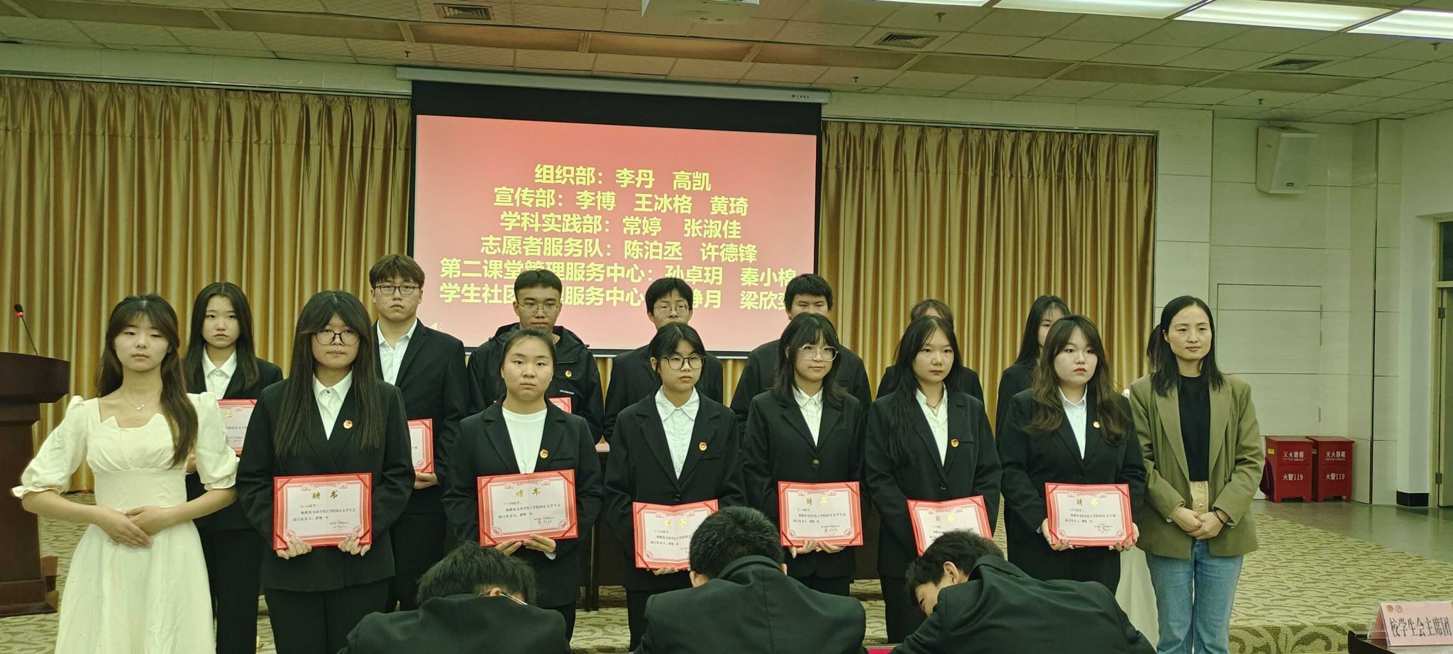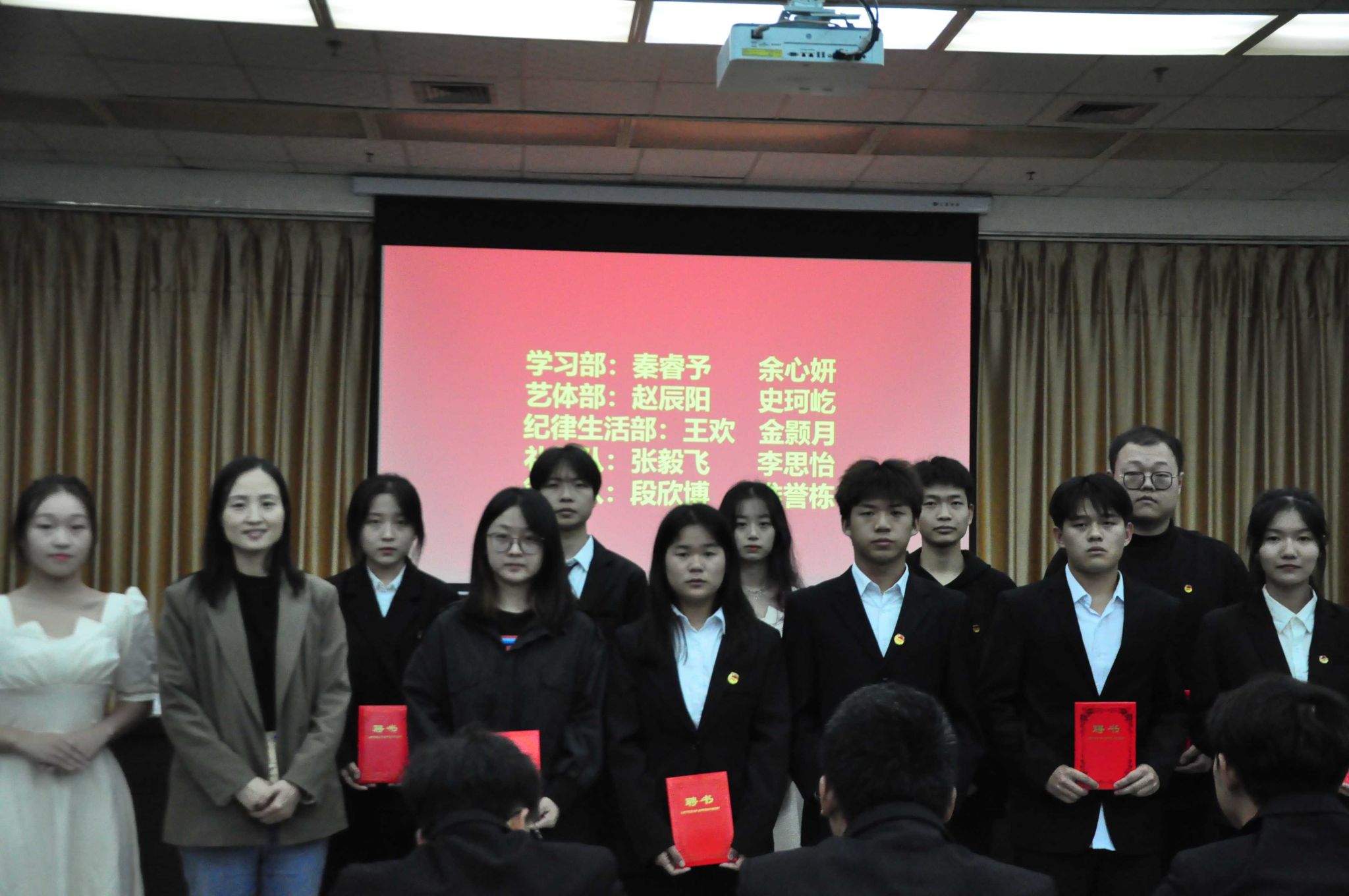 柳林为团总支员工会主席团成员颁发聘书。