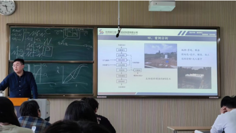 2024年4月22日-23日,李博士结合自身的科研和工作经历为环境生态工程专业21级1班员工上了两堂精彩纷呈的课。他分别就生物膜污水处理系统和污水自然处理系统从标准要求到案例分析,中穿插介绍了水处理方向的发展动态、新理论、新工艺以及水处理行业对科技人才的需求,所讲内容结合专业和行业发展,丰富具体,有深度,有见解,赢得同学们阵阵掌声。