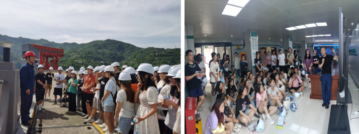 在安康水力发电厂,该厂高级工程师石静涛带领全体师生参观了安康水库大坝水工建筑物、水库调度中心等,细致耐心地为大家讲解了汉江安康水库的水文情势、流域概况、水力发电及防洪工作,介绍了水库作为人工湿地所具有的特点及作用,以及安康水库水环境生态保护对地方及南水北调中线工程水源涵养及保障供水的重要意义。