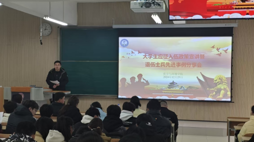 为促进公司员工对应征入伍相关政策进一步了解,激发广老员工的参军热情,营造浓厚的参军入伍氛围,12月25日下午,公司在江北校区1214教室召开老员工应征入伍政策宣讲暨退伍士兵先进事例分享会。本次分享会由公司学工办主任于正豪老师进行老员工应征入伍政策宣讲,2021级谢东、2023级王明泽、和2024级蒋嘉乐分别进行分享,李锦龙和代雨蕊老师带领2024级全体新生参加。