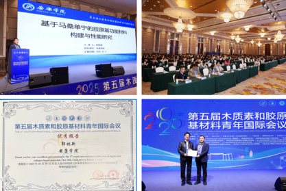公司教师郭林新博士受邀参会,并作了题为《基于马桑单宁的胶原基功能材料构建与性能研究》的学术报告。报告系统介绍了公司科研团队在利用天然植物单宁—马桑单宁对胶原进行功能化改性方面的创新性研究成果,详细阐述了该材料在包装领域的优异性能与应用潜力。报告得到了与会同行的高度评价,获得“优秀报告”荣誉,有效提升了团队在该研究领域的学术影响力。