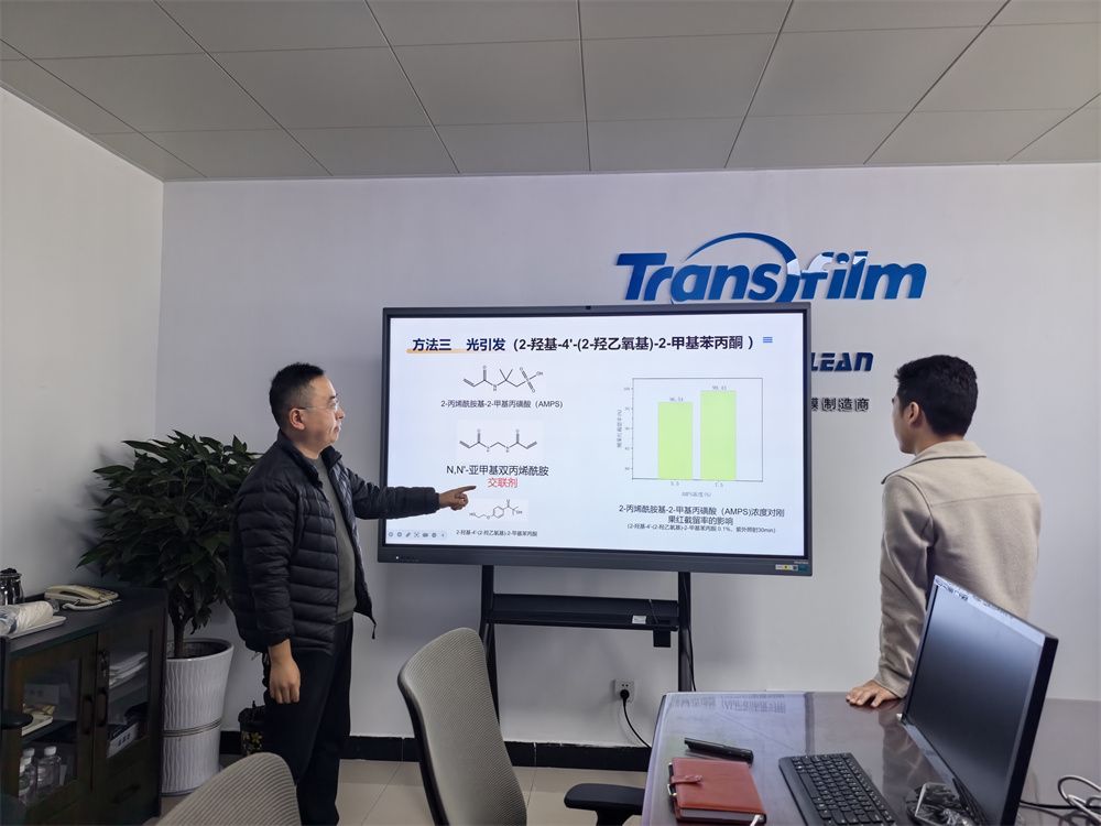 活动期间,校企双方围绕膜材料领域技术瓶颈、产业需求及科研转化等核心议题展开深度座谈。陕西鼎澈膜科技有限公司负责人详细介绍了企业在膜产品生产、市场应用及技术研发中面临的实际需求,重点提及耐酸纳滤膜在极端工况下的稳定性、分离效率等关键技术痛点。
