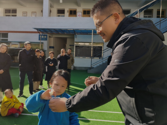 闫超咸老师用通俗易懂的语言解释了“什么是化学”,拉进了员工与化学学科的距离。闫超咸、孙安霞两位老师通过现场演示,向员工们展示了紫甘蓝浸出液变色实验。又在操场上集中展示了家庭厨房和卫生间中常见的食盐、白砂糖、白酒、白醋、纯碱、小苏打、牙膏、肥皂水、狮头柑、雪碧等物质,并邀请在场员工将以上每一种物质分别加入紫甘蓝浸出液中,观察浸出液的颜色变化。员工回忆每一种物质的味道及其对紫甘蓝浸出液颜色的影响,教会员工归纳实验现象、总结紫甘蓝浸出液变色的基本规律。活动现场气氛热烈同学们踊跃参与,为同学们打开了化学世界的大门,点燃了孩子们对科学的好奇与探索的勇气。